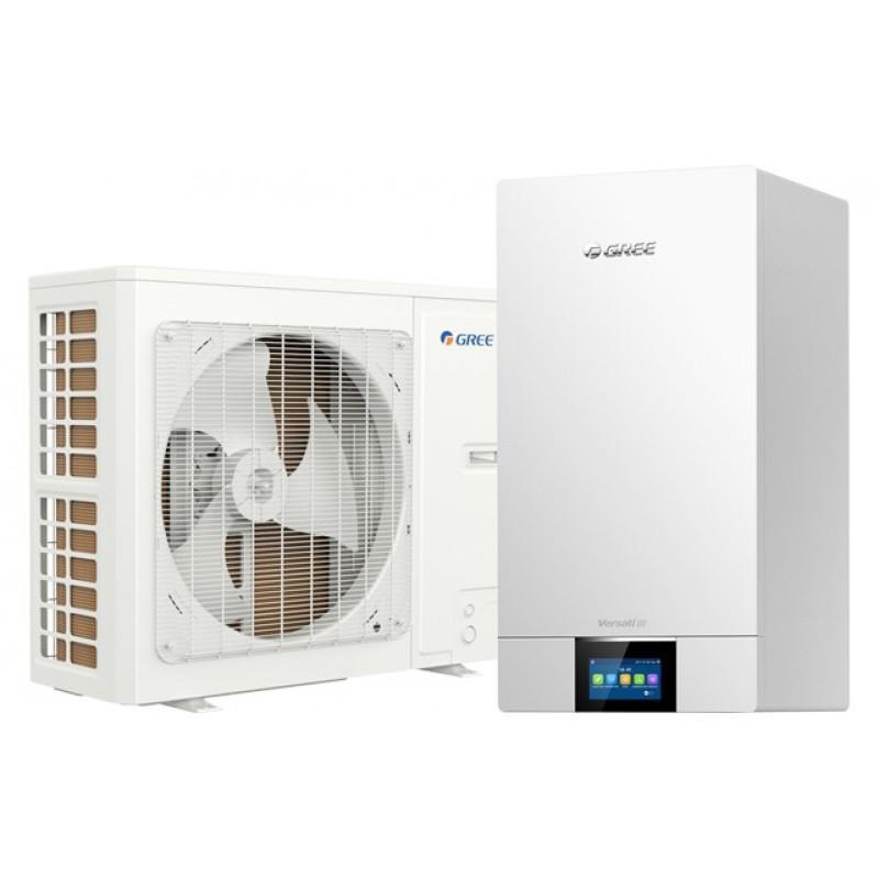 Тепловые насосы Gree GRS-CQ12Pd/NhH2-E серии Versati III (сплит-системы) «воздух-вода» с инверторными компрессорами с впрыском пара предназначены для нагрева воды для горячего водоснабжения или напольного отопления, а также для отопления или охлаждения воздуха в помещении до 120 м²Особенности и функции Gree GRS-CQ12Pd/NhH2-E